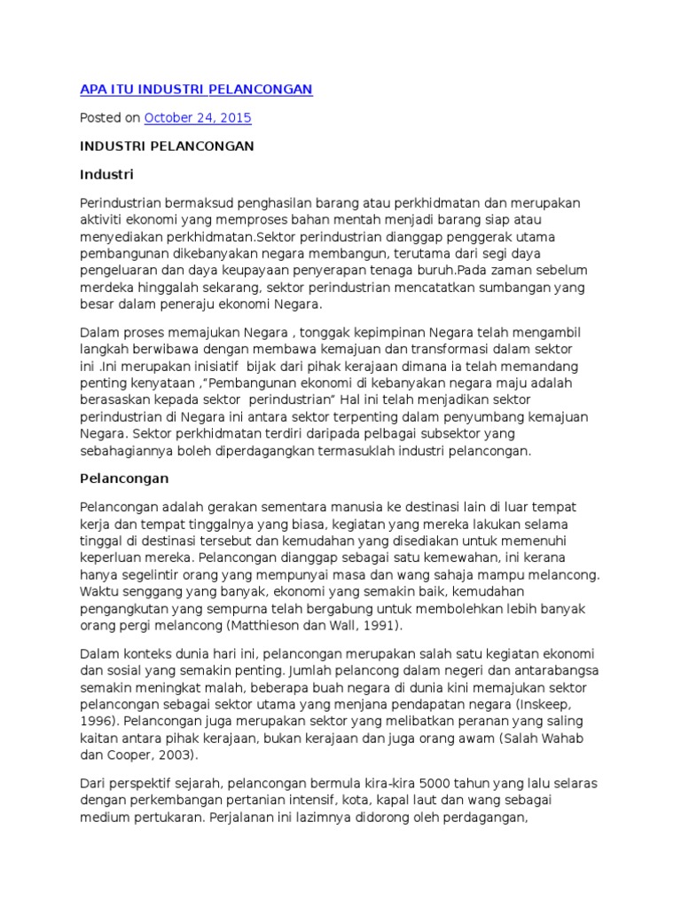 Doc Kerjaya Sektor Perhotelan Hazman Ag Sulaiman Academia Edu from 0.academia-photos.com Pelancongan malaysia sejak lima darsawasa ini, industry pelancongan kini lebih mementingkan destinasi yang selamat dan mudah untuk dikunjungi pelancong., mempunyai tahap kesihatan yang tinggi, infrastruktur yang lengkap dan alam sekitar yang bersih. Memandangkan malaysia mempunyai potensi yang besar dalam bidang pelancongan, inisiatif yang efisien perlulah diambil untuk memajukan industri pelancongan di tanah air kita. Ekonomi yang utama di negara kita. Pencemaran alam sekitar juga merupakan salah satu halangan atau cabaran dalam sektor pelancongan di negara kita pada masa depan. Halangan untuk memajukan sektor pelancongan. Terdapat beberapa cara yang boleh dilakukan untuk memajukan sektor pelancongan. Dalam industri pelancongan, disamping mendatangkan keuntungan kepada negara, ia mempunyai cabaran dan halangan dalam menjayakannya. Misalnya, pelancong membelanjakan sejumlah wang.